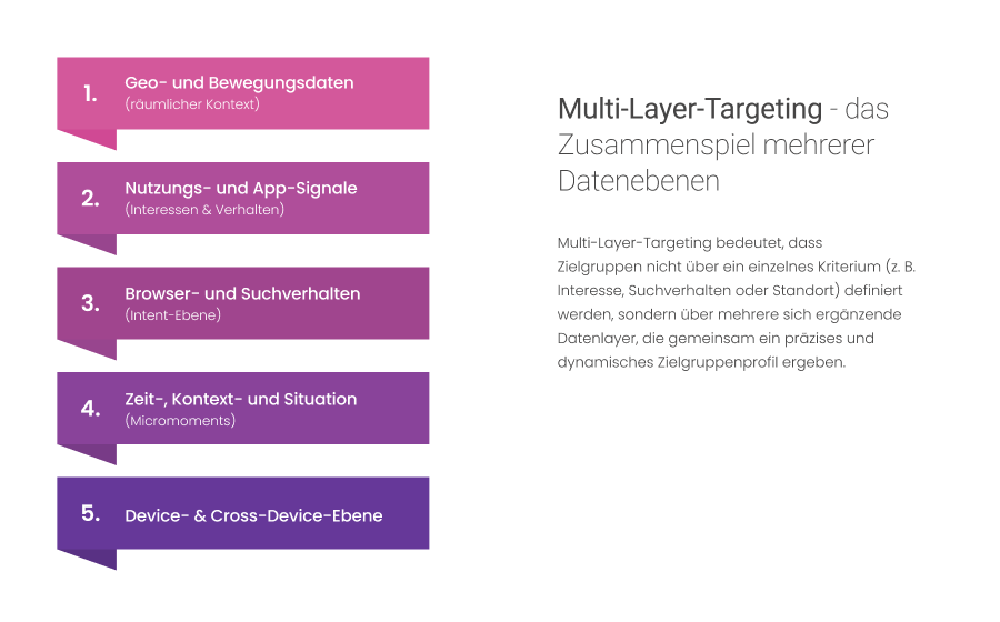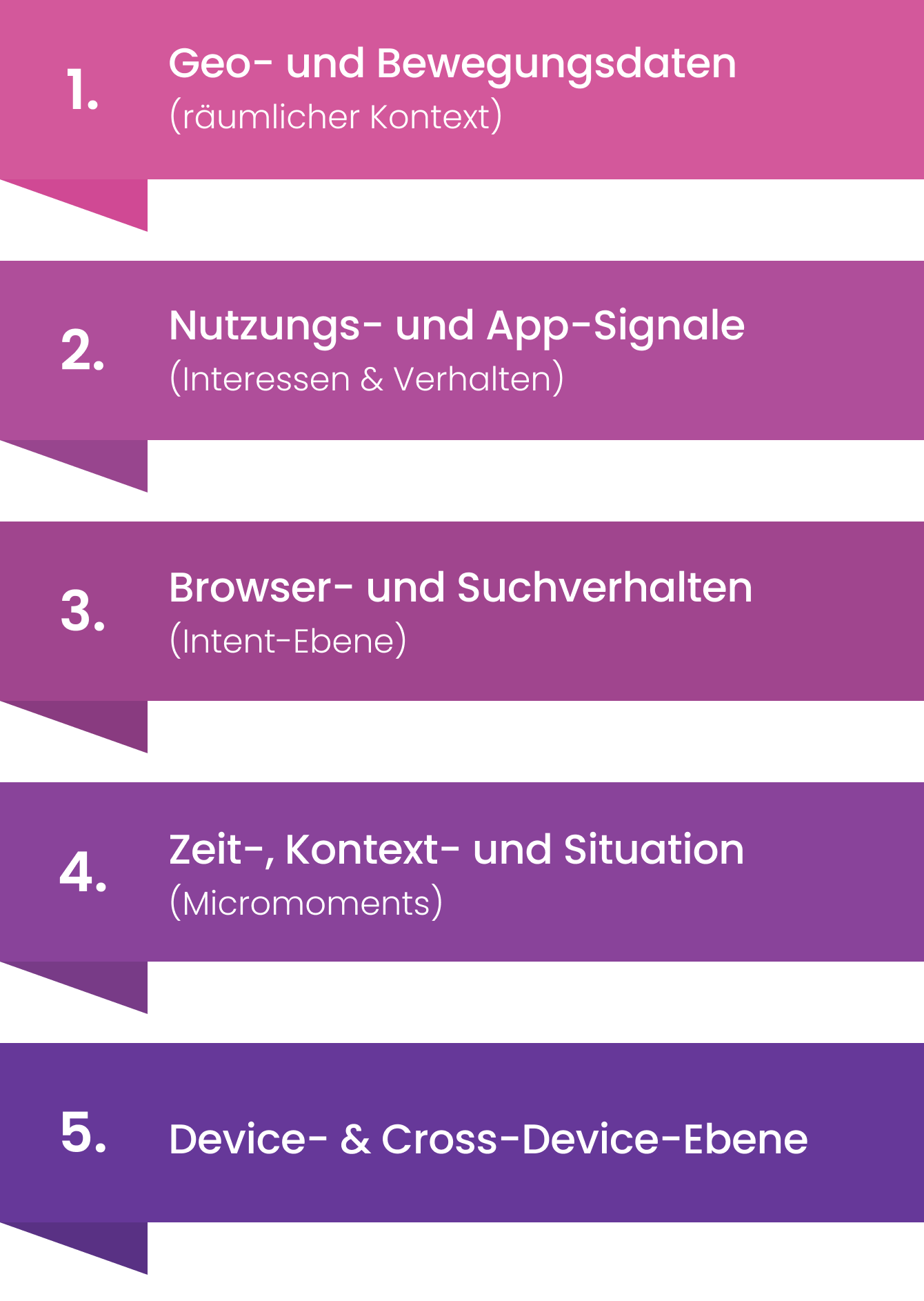 Grundlage ist dabei eine gerätebasierte, datenschutzkonforme Identifikation (keine personenbezogenen Daten), die es erlaubt, Nutzungskontexte, Bewegungsmuster und Interessen situativ zu interpretieren, statt Nutzer statisch zu kategorisieren.
